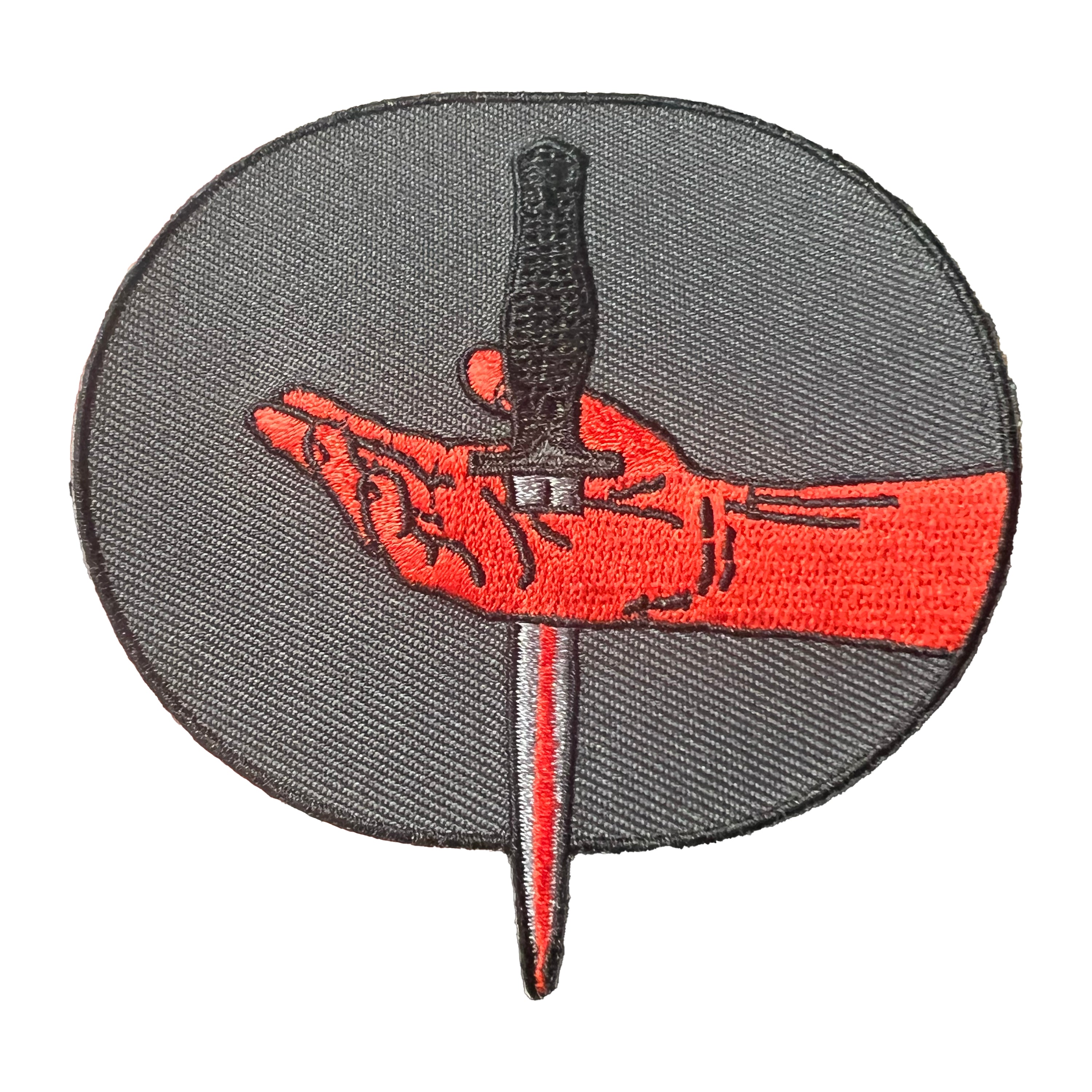 3.5 x 3” patch with iron on backing and hot cut edge